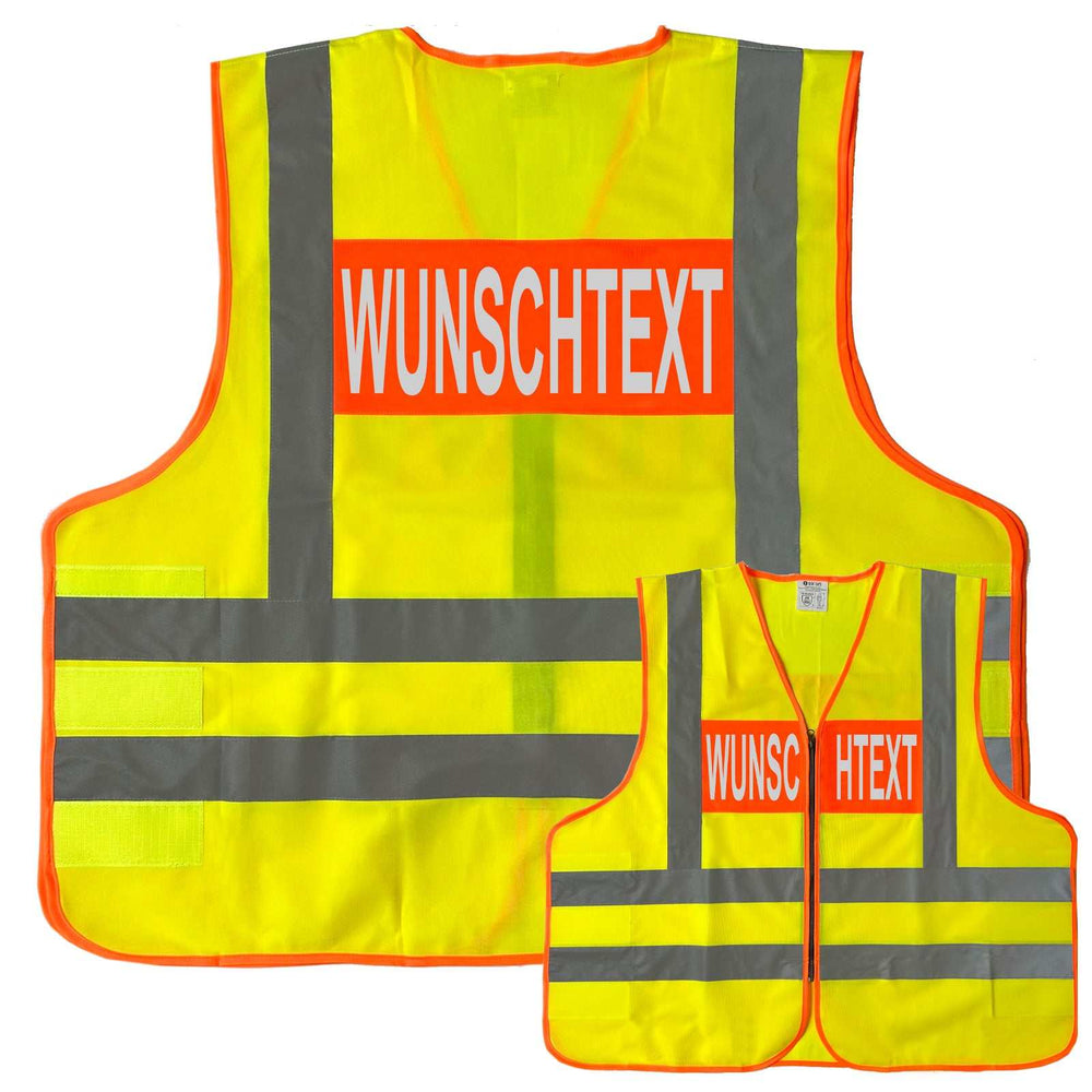 Angeboten werden hochwertige Dönges-Signalwesten, die wir mit Ihrem Wunschbegriff bedrucken. Die Warnwesten übertreffen dabei sogar die bereits hohen Mindestanforderungen des BMI (Bundesministerium des Innern und für Heimat), wodurch die Westen ein deutlich höheres Gewicht von 150g/m2 besitzen. Entsprechend genormt sind die Farbe (gelber Grundton mit Signalfeld zur Beschriftung wahlweise in gelb oder blau). Der gezeigte Begriff ist ein Beispiel, Sie können einen Wunschtext frei eingebe.