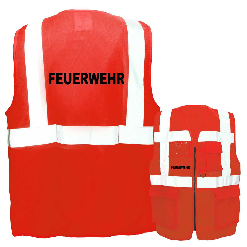Angeboten werden hochwertige Multifunktions-Warnwesten mit Aufdruck Feuerwehr in vielen Farben und Größen. Falls ein anderer Begriff benötigt wird, so kann über den Konfigurator auch abweichender Aufdruck angegeben werden, ebenso kann in der Auswahl auf Wunsch ein Firmenname, Vereinsname, Funktionsbezeichnung etc. addiert werden kann.