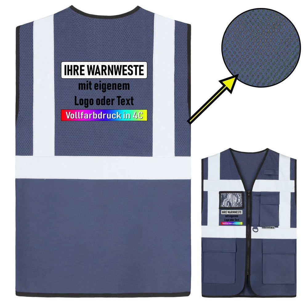 Angeboten werden hochwertige Multfunktions-Mesh-Warnwesten in vielen Farben und Größen mit Reißverschluss, mehreren Taschen, einem Ausweis-Sichtfenster und drei Leuchtstreifen. Ideal für den Sommer oder für Einsatzorte mit hoher Temperatur. Wir bedrucken diese auf Wunsch mit Ihrem Wunschtext, Bild, Firmenname oder Logo. Egal ob für den privaten oder geschäftlichen Einsatz, ob mit Ihrem Namen, Firmenlogo, einem Vereinslogo oder einem Text-Hinweis, durch die Bedruckung lassen sich unsere Westen auf vielerlei Weisen einsetzen.