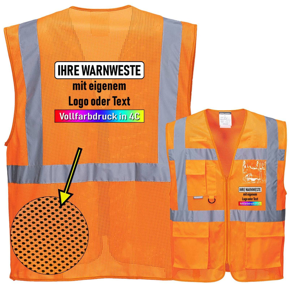 Die Warnwesten dieses Typs sind nach EN ISO 20471 in der Klasse 2 normiert. Die Normierung gilt für beide Farben (gelb und orange) sowie Größen. Bitte beachten Sie bei der Wahl, dass je nach Einsatzgebiet weitere Vorgaben gelten könnten, so sind bspw. im Schienennetz vorrangig orange Westen im Einsatz, während auf Baustellen die BG Bau orange und gelbe Westen akzeptiert. Die Westen können auch für eine Klasse 3-Zertifizierung mit anderen Warnschutz-Bekleidungen wie bspw. Hosen kombiniert werden, wichtig für den Straßenbau bei Schnellstraßen.