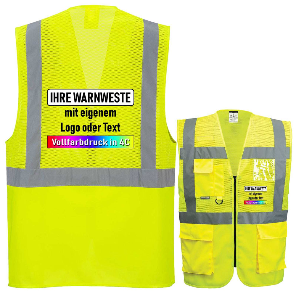Die Warnwesten dieses Typs sind nach EN ISO 20471 in der Klasse 2 normiert. Die Normierung gilt für beide Farben (gelb und orange) sowie Größen. Bitte beachten Sie bei der Wahl, dass je nach Einsatzgebiet weitere Vorgaben gelten könnten, so sind bspw. im Schienennetz vorrangig orange Westen im Einsatz, während auf Baustellen die BG Bau orange und gelbe Westen akzeptiert. Die Westen können auch für eine Klasse 3-Zertifizierung mit anderen Warnschutz-Bekleidungen wie bspw. Hosen kombiniert werden, wichtig für den Straßenbau bei Schnellstraßen.